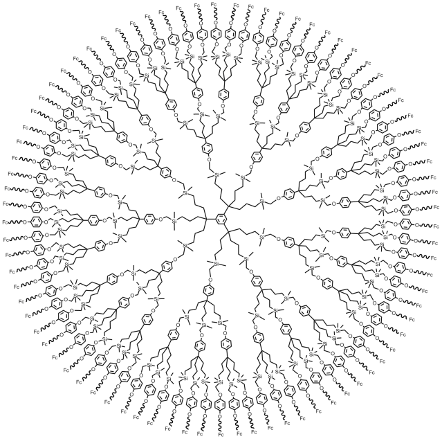 For the initial “dendrimer core” I have used Chemdraw’s “Expand Generic Structure” feature, beginning with a mesitylene skeleton with three times R1 with