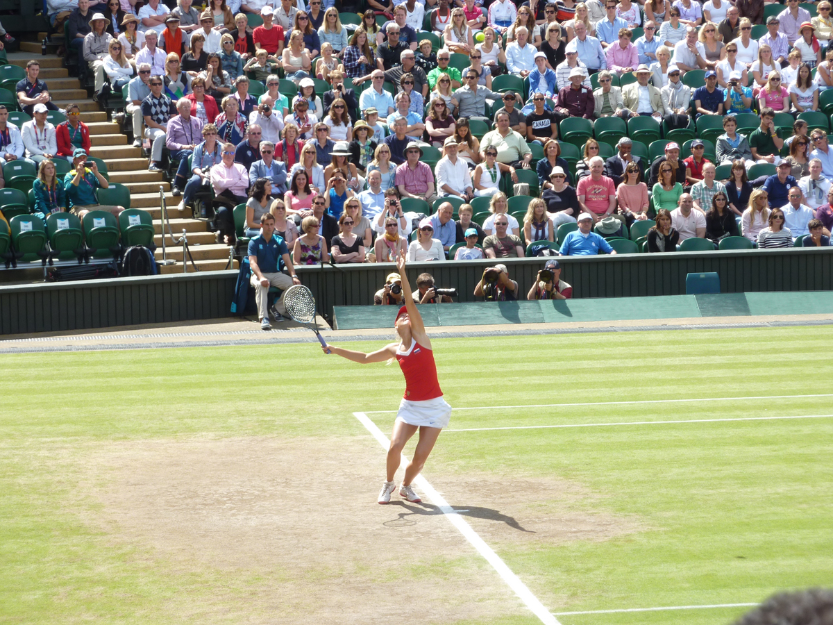 We were lucky enough to see a couple of events at the London 2012 Olympics… first up was some tennis at Wimbledon. We got to see Murray and Robson in the mixed doubles (beating the Australians — which is always a bonus — in the quarter-finals). The main event, which turned out to be a major non-event, was the women’s singles final between Williams (Serena) and Sharapova. It finished 6-0, 6-1. The most dramatic moment happened during the medal ceremony, when the US flag fluttered gently to the ground when it came loose during the anthem. Anyway, here’s a photo that you can play spot-the-ball with…